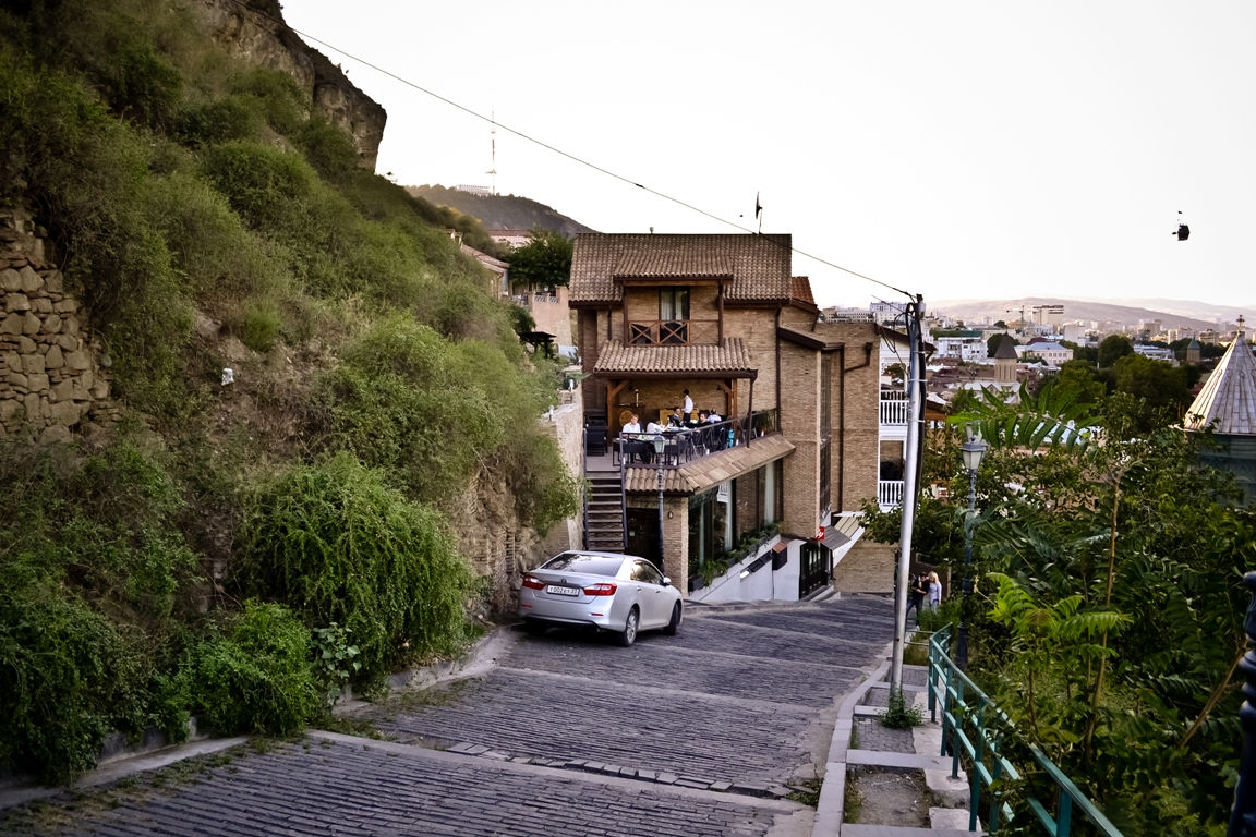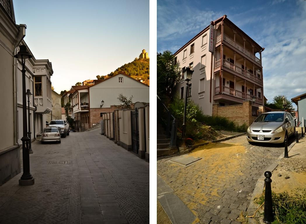 Крутые спуски и подъемы выложены гранитной брусчаткой, огромное количество отелей, хостелов и ресторанов разместилось в отреставрированных грузинских домах.